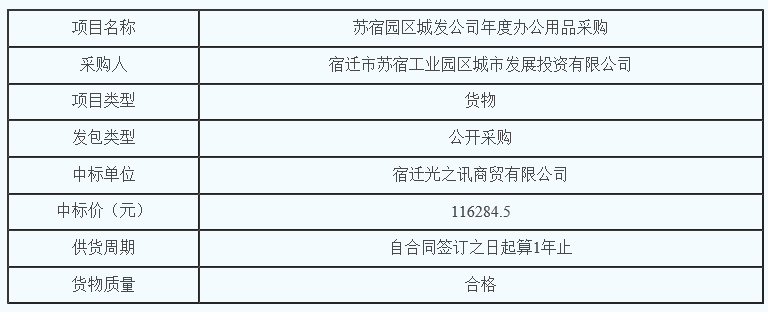 蘇宿園區(qū)城發(fā)公司年度辦公用品采購的中標(biāo)公告