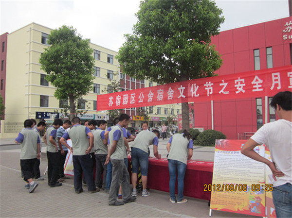 8月8日上午,在園區(qū)人才市場廣場開展“園區(qū)公舍宿舍文化節(jié)”活動,本次活動通過展板、簽名等形式向公舍廣大住宿職工宣講消防安全及安全用電知識,此次活動為即將開展的消防演練奠定了基礎(chǔ)。
