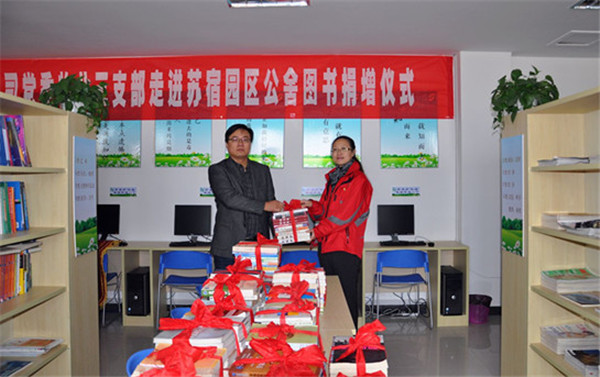 11月17日上午,蘇大教服集團(tuán)黨委物業(yè)三支部陳彤彤書記一行走進(jìn)園區(qū)公舍開展圖書捐贈活動,建發(fā)公司副總經(jīng)理張驥同志參加了此次活動。