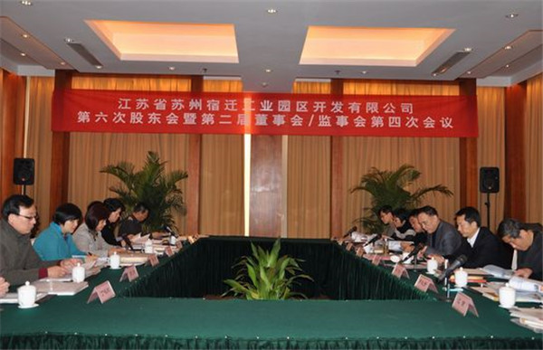 2013年1月18日上午,江蘇省蘇州宿遷工業(yè)園區(qū)開發(fā)有限公司召開第六次股東會暨第二屆董事會/監(jiān)事會第四次會議。公司股東代表、董事、監(jiān)事參加了會議,公司經(jīng)營管理班子成員列席了此次會議,會議由宿遷市副市長、蘇州宿遷工業(yè)園區(qū)黨工委書記、管委會主任、公司董事長顧玉坤同志主持。