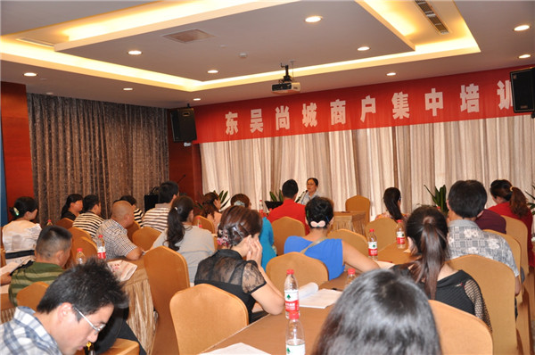 為確保東吳尚城7月中旬順利開業(yè),6月3日起,開發(fā)公司組織開展了入駐商戶集中培訓(xùn)活動(dòng),40余家簽約商戶參加培訓(xùn)。在當(dāng)天上午的培訓(xùn)中,開發(fā)公司相關(guān)部門負(fù)責(zé)人向商戶介紹了工程進(jìn)展、入場裝修注意事項(xiàng)以及物業(yè)管理等方面的事宜,并詳細(xì)解答了商戶提出的問題。