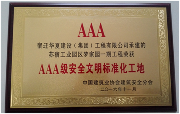 近日,由園區(qū)開(kāi)發(fā)公司代建的夢(mèng)家園一期工程獲評(píng)二零一六年度“AAA級(jí)安全文明標(biāo)準(zhǔn)化工地”稱號(hào)。夢(mèng)家園一期工程是本年度宿遷市唯一一家獲此殊榮的在建項(xiàng)目。