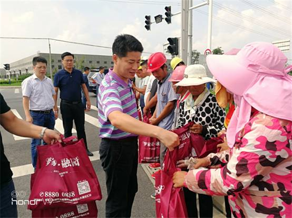 8月16日上午,開發(fā)公司副總裁劉建華帶領市政工程部、房建工程部和行政人事部部門負責人來到公司項目工地,現(xiàn)場慰問了奮戰(zhàn)在高溫一線的企業(yè)員工和建筑工人,并親自給他們遞上了毛巾、肥皂、洗發(fā)水、清涼油等防暑降溫物品。