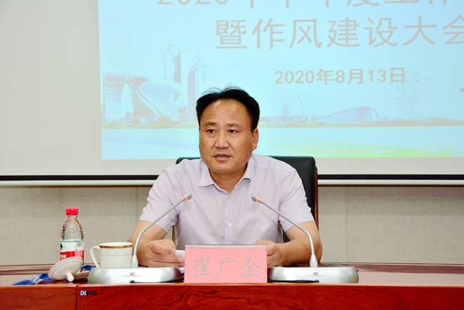 為貫徹落實(shí)園區(qū)2020年半年度工作會(huì)議、園區(qū)作風(fēng)建設(shè)大會(huì)精神,總結(jié)回顧上半年工作,查擺作風(fēng)建設(shè)中存在問(wèn)題,部署安排下半年工作,8月13日下午,開(kāi)發(fā)公司、建發(fā)公司、城發(fā)公司、蘇宿鄰里公司在園區(qū)安全生產(chǎn)教育館召開(kāi)2020年半年度工作總結(jié)暨作風(fēng)建設(shè)大會(huì),動(dòng)員全體干部職工砥礪奮進(jìn),擔(dān)當(dāng)作為,為推進(jìn)園區(qū)高質(zhì)量發(fā)展作出國(guó)資國(guó)企應(yīng)有貢獻(xiàn)。園區(qū)黨工委委員、管委會(huì)副主任、黨工委管委會(huì)辦公室主任崔廣全出席會(huì)議并講話。