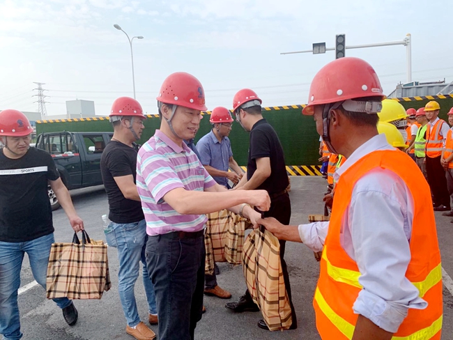 8月21日下午,開發(fā)公司副總裁劉建華帶隊慰問市政工程項目現(xiàn)場工人,給他們送去毛巾、香皂、洗發(fā)水等防暑降溫用品,感謝他們對園區(qū)市政工程的建設作出的貢獻。