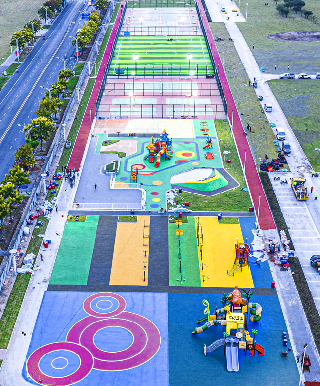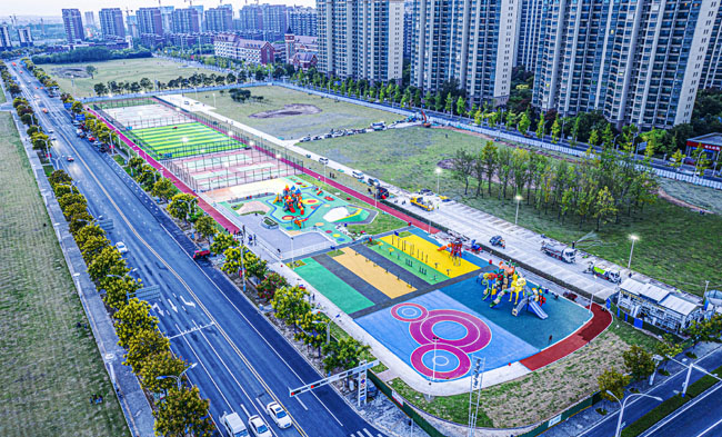 該項(xiàng)目所處位置原為一處待開(kāi)發(fā)地塊,園區(qū)根據(jù)居民需求規(guī)劃建設(shè)健身跑道、全齡段健身區(qū)、綜合兒童活動(dòng)區(qū)、平地輪滑場(chǎng)、廣場(chǎng)舞片區(qū)和各類球場(chǎng)(其中羽毛球四組、網(wǎng)球場(chǎng)一組,7人制籠式足球場(chǎng)一組、籠式籃球場(chǎng)四組),同步建設(shè)公廁、停車場(chǎng)等配套設(shè)施。