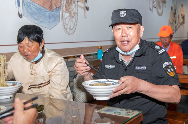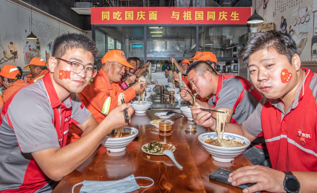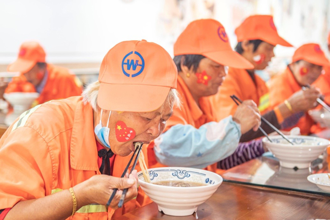 一碗“國(guó)慶面”,一份愛國(guó)情。當(dāng)一碗碗熱氣騰騰、香氣撲鼻的面條送到環(huán)衛(wèi)工人、快遞小哥等堅(jiān)守在一線崗位上的工作人員手中,大家接過面條,享用著寓意美好的“國(guó)慶面”,每個(gè)人的臉上都洋溢著幸福和快樂的笑容。大家用最樸素最平常的食物,表達(dá)了對(duì)祖國(guó)母親生日快樂的真摯情感。