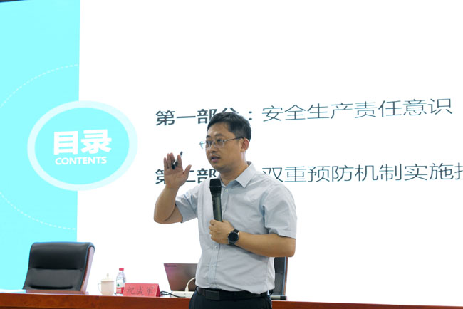 本次培訓(xùn)邀請國家注冊安全工程師祝成軍進(jìn)行授課。培訓(xùn)會上,祝成軍圍繞開展安全生產(chǎn)雙重預(yù)防體系建設(shè)工作的意義,相關(guān)法律法規(guī)、標(biāo)準(zhǔn)等內(nèi)容進(jìn)行了詳細(xì)講解,并結(jié)合具體事故案例,對如何理解雙重預(yù)防體系、如何劃分作業(yè)單元、如何進(jìn)行風(fēng)險辨識與評價等內(nèi)容進(jìn)行了專門的講解。
