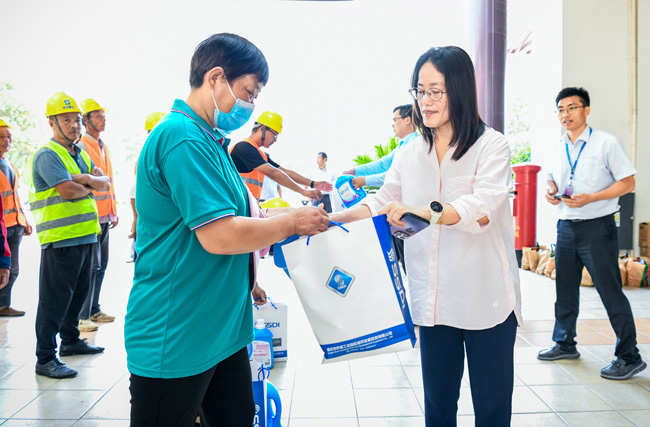 “大家在做好本職工作同時(shí),注意保重身體,防暑措施一定要做到位,確保安全生產(chǎn)。”在明日鄰里中心慰問(wèn)現(xiàn)場(chǎng),李蘭霞與物業(yè)員工們親切交談,感謝他們?yōu)楣景l(fā)展和民生保障付出的辛勤努力,反復(fù)叮囑大家要提高夏日防暑意識(shí),做好自我防護(hù),確保以更好的狀態(tài)投入到工作中?,F(xiàn)場(chǎng)強(qiáng)調(diào)各部門要守牢安全底線,做好高溫時(shí)節(jié)各項(xiàng)工作,普及好防暑降溫和急救知識(shí),確保廣大一線職工的安全。