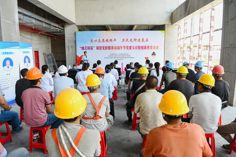 為進一步弘揚中華民族傳統(tǒng)文化,關心關愛園區(qū)一線職工,不斷深化黨建合作,打造“城芯同筑”黨建品牌, 6月7日下午,在這個充滿濃厚傳統(tǒng)文化氣息的節(jié)日里,“城芯同筑”項目黨群服務站邀請宿遷市第一人民醫(yī)院和蘇宿園區(qū)社區(qū)衛(wèi)生服務中心的醫(yī)療專家團隊為智慧信息產(chǎn)業(yè)園項目建設者開展便民義診和健康講座活動。