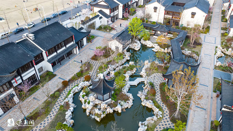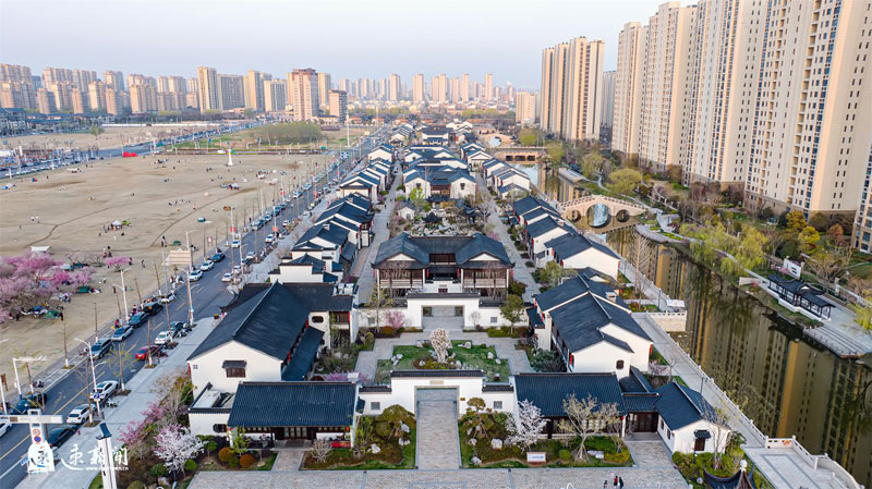 3月31日,蘇州街盛開的櫻花、海棠、玉蘭與蘇式街區(qū)相互映襯,美不勝收。
