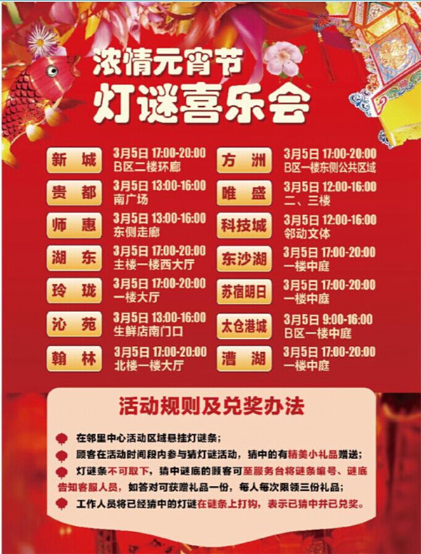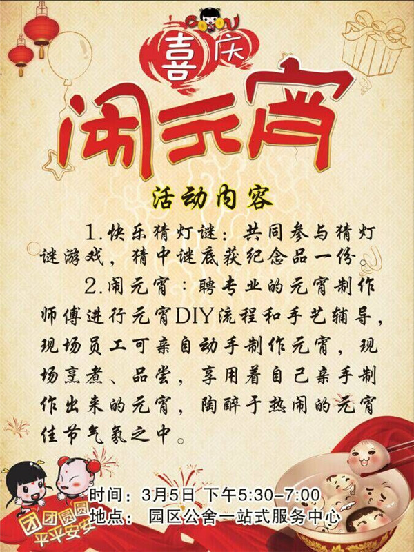 元宵節(jié)期間,園區(qū)公舍、蘇宿明日鄰里中心均為廣大園區(qū)居民奉上了精彩活動(dòng),有獎(jiǎng)品多多的“快樂猜燈謎”,還有專業(yè)的元宵DIY現(xiàn)場輔導(dǎo),歡迎園區(qū)居民和工友們前來參加。