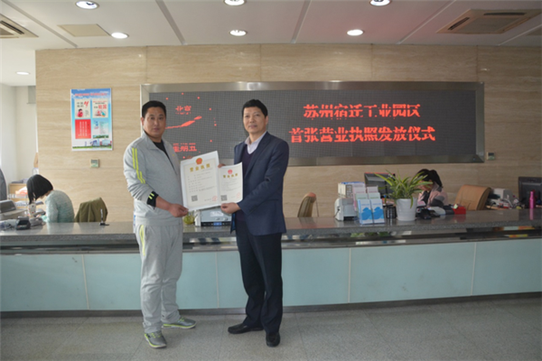 3月18日上午,市民劉有松在園區(qū)領(lǐng)取了其經(jīng)營的蔬果零售店?duì)I業(yè)執(zhí)照,這是園區(qū)市場監(jiān)督管理局成立以來發(fā)放的第一張營業(yè)執(zhí)照。園區(qū)黨工委委員、管委會(huì)副主任戈亮出席發(fā)放儀式。