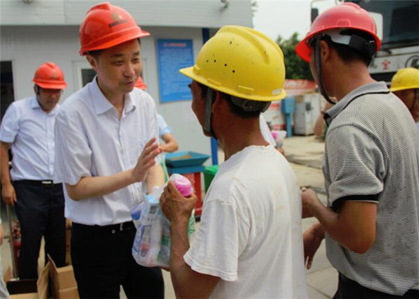 許紹杰仔細(xì)詢問了一線工人工作、生活情況,給他們送上毛巾、礦泉水、沐浴露等防暑降溫用品,并要求施工單位根據(jù)夏季高溫氣候特點(diǎn)及時調(diào)整作息時間,認(rèn)真落實(shí)防暑降溫措施,充分保證工人的休息,防止中暑,確保施工安全。