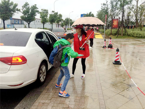 10月21日上午,第一組家長(zhǎng)志愿者首次上崗,他們?cè)谟曛兄笓]車輛、疏導(dǎo)交通,用實(shí)際行動(dòng)為孩子們撐起了一把“愛(ài)心保護(hù)傘”。